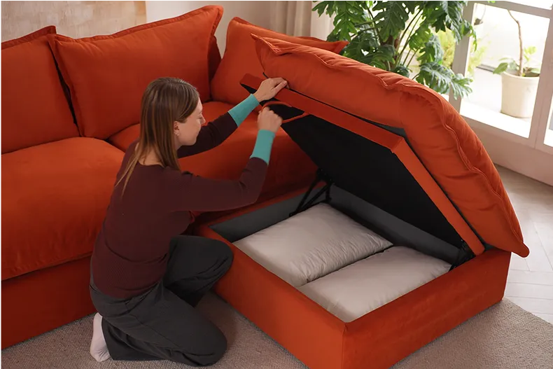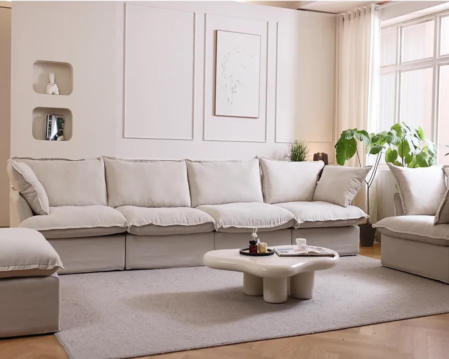 When the Sky Cloud Plus Velvet Sectional Sofa is paired with velvet fabric, it creates a unique charm. The velvet adds a touch of elegance to the sofa’s cozy, natural look, giving it an effortlessly chic style.
