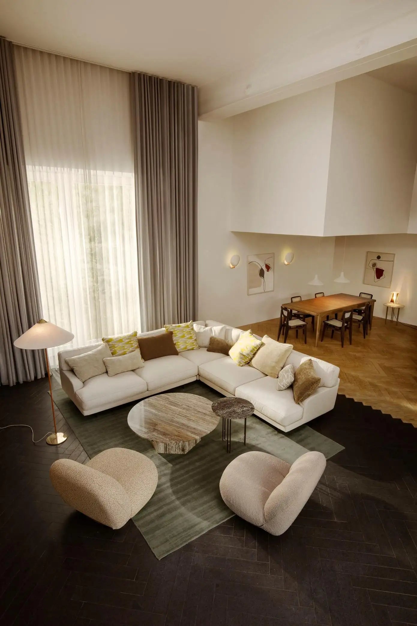 Curvaceous, soft, and low-slung, Cozhaven Puffseat lounge chair embodies joyful modernism with an irresistibly cloud-like comfort. Designed for effortless relaxation and refined versatility, it brings sculptural elegance to any space. Its organic form, paired with impeccable ergonomic detailing, delivers both visual and physical harmony. Compact yet luxuriously comfortable, the chair is available with either a fixed or swivel base, and can be paired with matching ottomans or modular sofa sections for a seamless, cloud-inspired arrangement. Offered in black or pearl gold bases with a wide range of bespoke upholstery options, it makes a sophisticated statement in any living room, lobby, or contemporary interior.