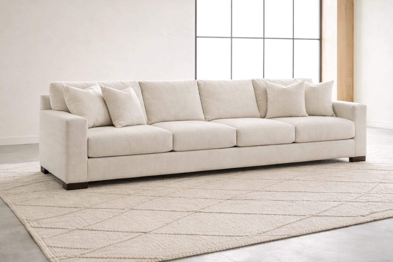 Blending timeless design with modern versatility, our classic modern custom couch is crafted in Canada and built to suit your lifestyle. This piece offers full customization—from dimensions and fabric to color and overall feel—so you can create a sofa that’s uniquely yours.