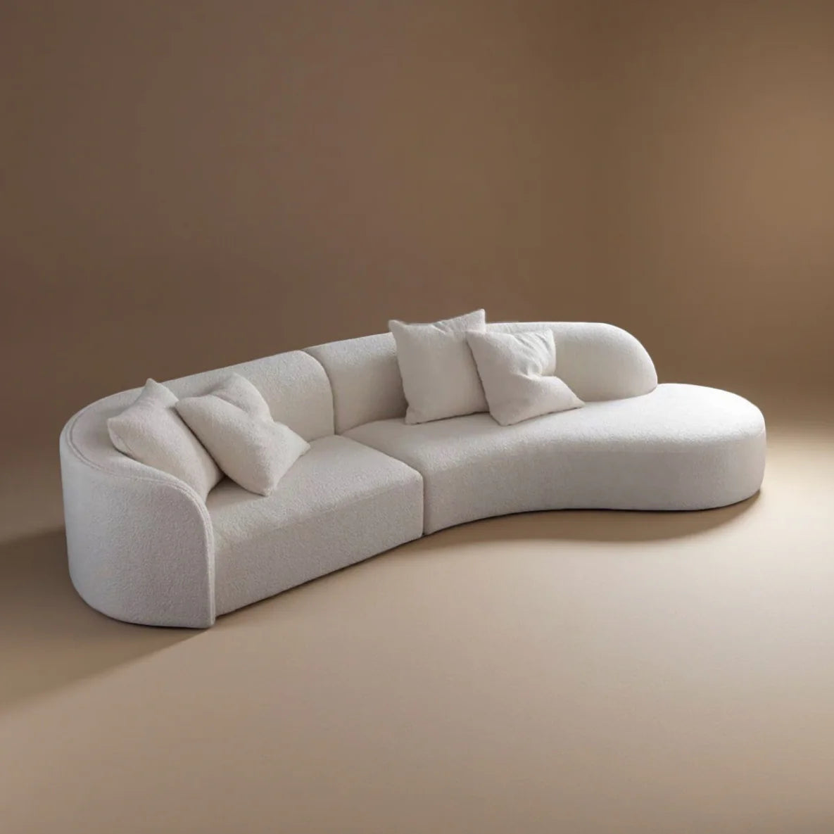 Gracefully sculpted with elegant curves, this piece elevates contemporary living spaces through its soft cream hue and understated design. Meticulously crafted for both comfort and refinement, it features high-resilience foam that offers exceptional support, wrapped in a smooth, skin-friendly brushed microfibre that exudes warmth and luxury.