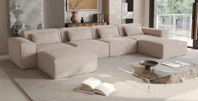 The modular and light-weight design allows you to rearrange the sofa freely. In addition, cloud velvet is used for the upholstery of this series, providing a breathable and skin-friendly touch.